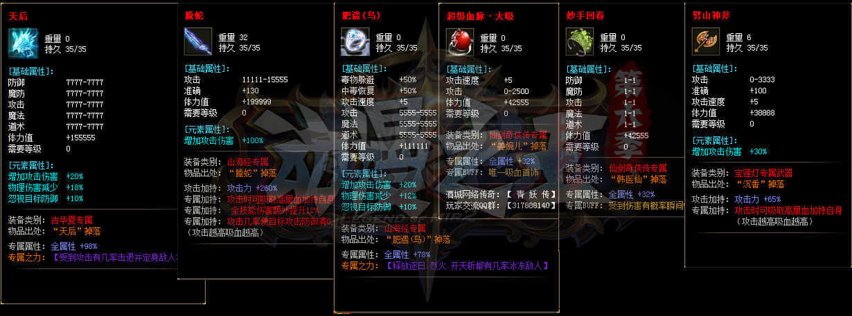 本服套装70套 散件专属3000多套 各种神装眼花缭乱 长期探索